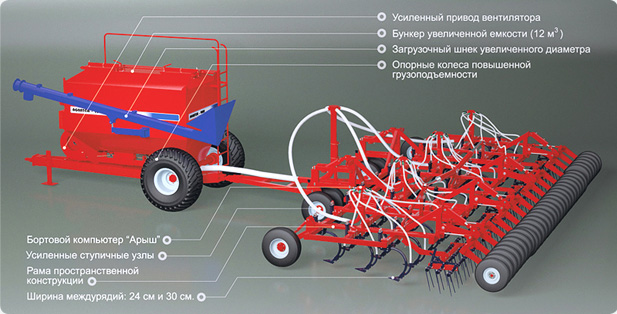 - Освоено производство посевных комплексов с шириной междурядий 24 см