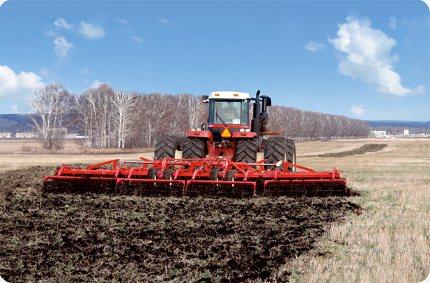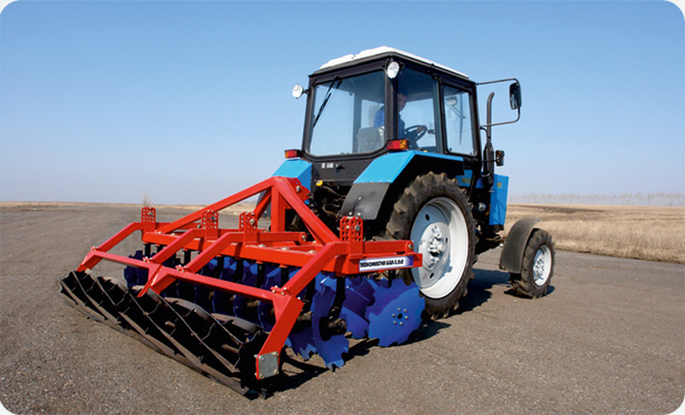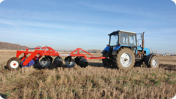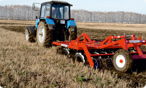 Применяется для основной обработки почвы под зерновые, кормовые и технические культуры. За один проход выполняет обработку почвы на глубину до 16см., измельчение и заделку растительных остатков предшественника и сорной растительности, создает взрыхленный слой почвы, заделывает внесенные удобрения.