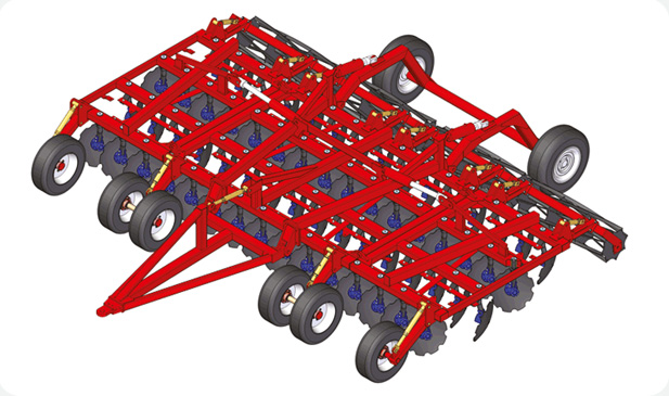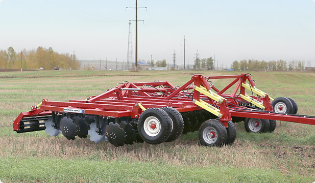 - 4-х рядный дисковый агрегат «DISKOMASTER-9х4» шириной захвата 9 метров предназначен для тракторов мощностью от 350 л.с и имеет высокую производительность.