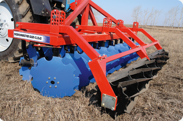 - В отличие от дисковых агрегатов других фирм, которые применяют диски диаметром 560 мм местного производства, «DISKOMASTER» комплектуются дисками диаметром 560 мм испанской фирмы Belotta, немецкого производства — Freiser и др. Улучшается качество работы и срок службы дисков.